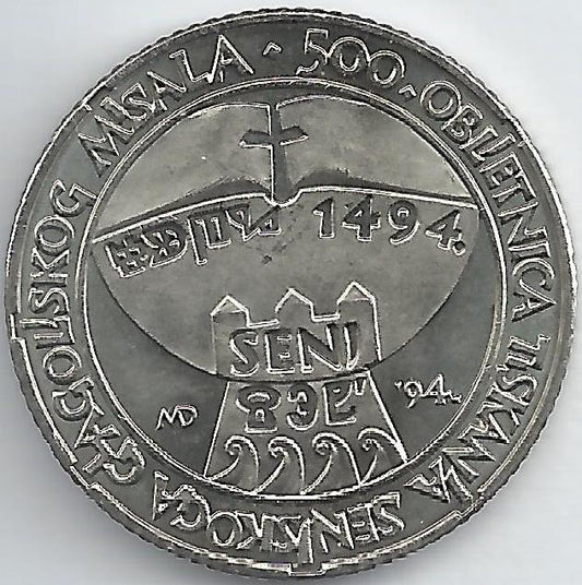 Croacia - 5 Kuna 1994 (Km# 24) 500º Anivº Breviário SENJ