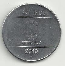India - 1 Rupia 2010 (Km# 385) Jubileu Platina