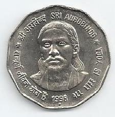 India - 2 Rupias 1998 (Km# 131) Sri Aurobindo