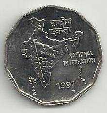 India - 2 Rupias 1997 (Km# 121) Integração Nacional