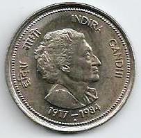 India - 50 Paisa 1985 (Km# 67) Indira Ghandi