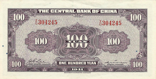 China - 100 Yuan 1941 (# 243)