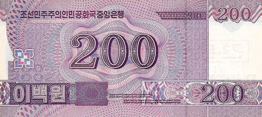 Coreia Norte - 200 Won 2008 (# 62s) Especimen