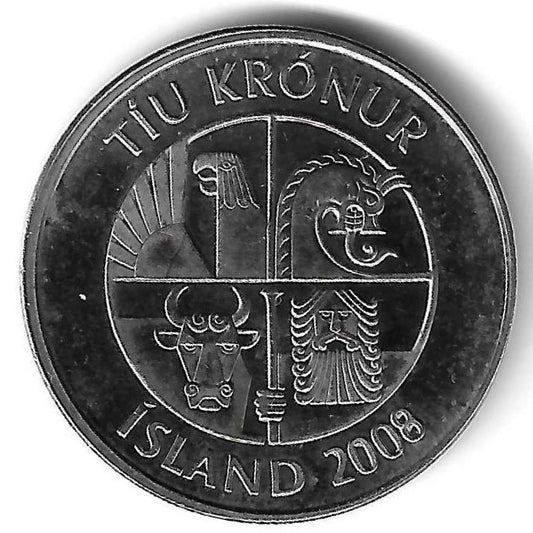 Islandia - 10 Kroner 2008 (Km# 29.1a)