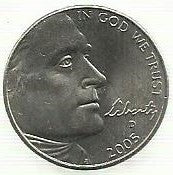 USA - 5 Cents 2005 (Km# 368) Bisonte