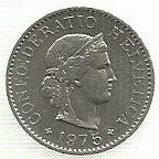 Suiça - 5 Rappen 1975 (Km# 26)