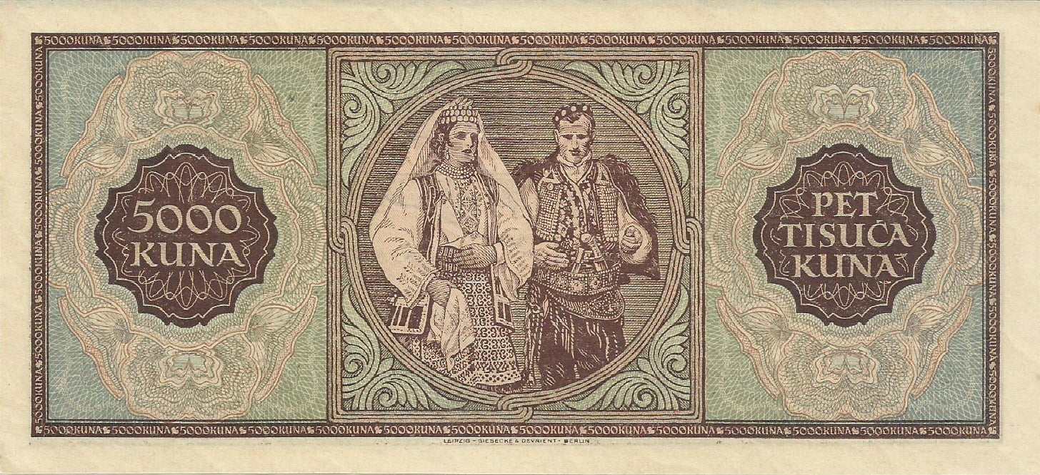 Pick# 13a - 5000 Kuna 1943