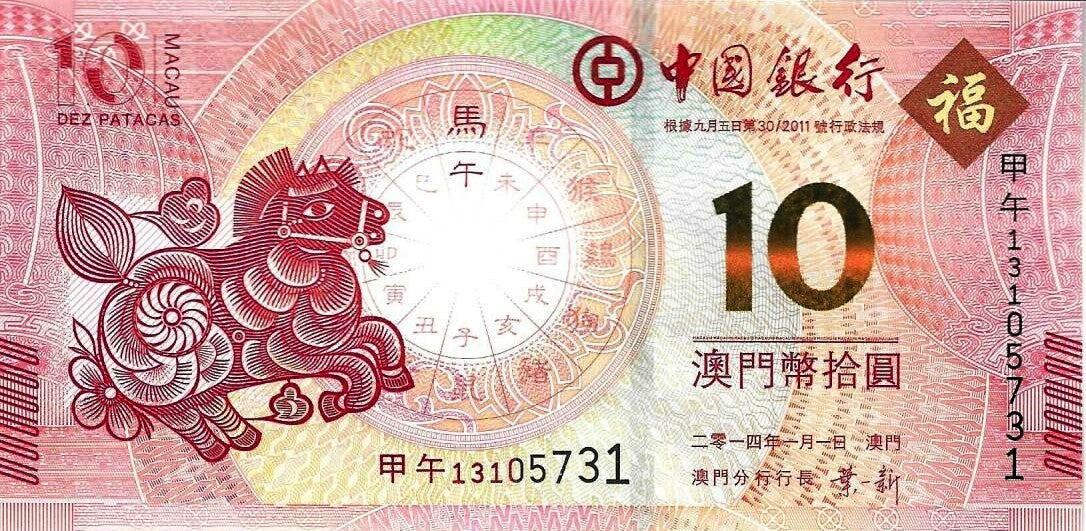 Macau - 10 Patacas 2014 (# 117) Ano Cavalo